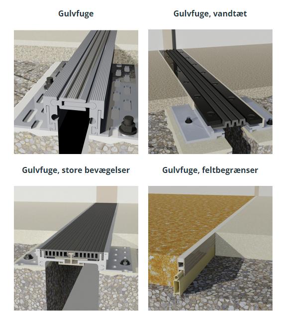 Vi er leveringsdygtige i et stort udvalg af fugeprofiler til dilatationsfuger i gulve, vægge, P-dæk, vejbroer, jernbanebroer osv.