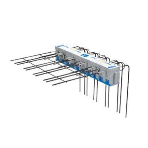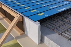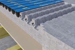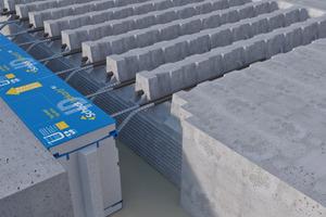 Schöck Isokorb® elementet bliver indstøbt i balkonen på fabrik. Balkonelementet monteres ved at indstøbe den frie armering direkte i recesserne på byggepladsen.